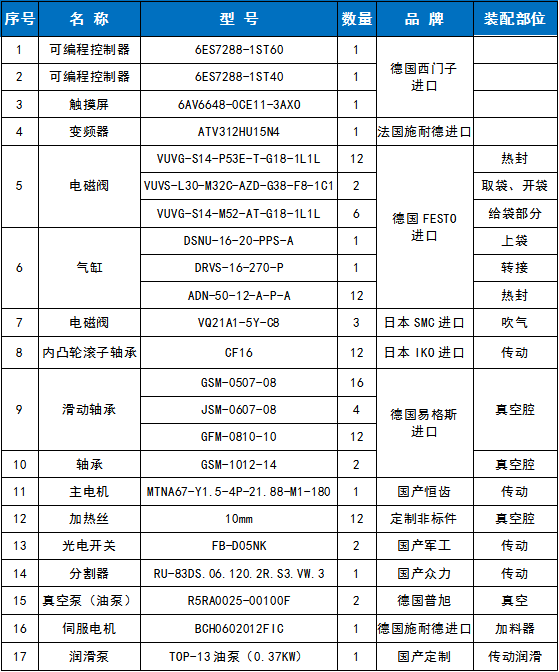 【名瑞機(jī)械】全自動(dòng)給袋式真空包裝機(jī)MRZK-100A配置清單